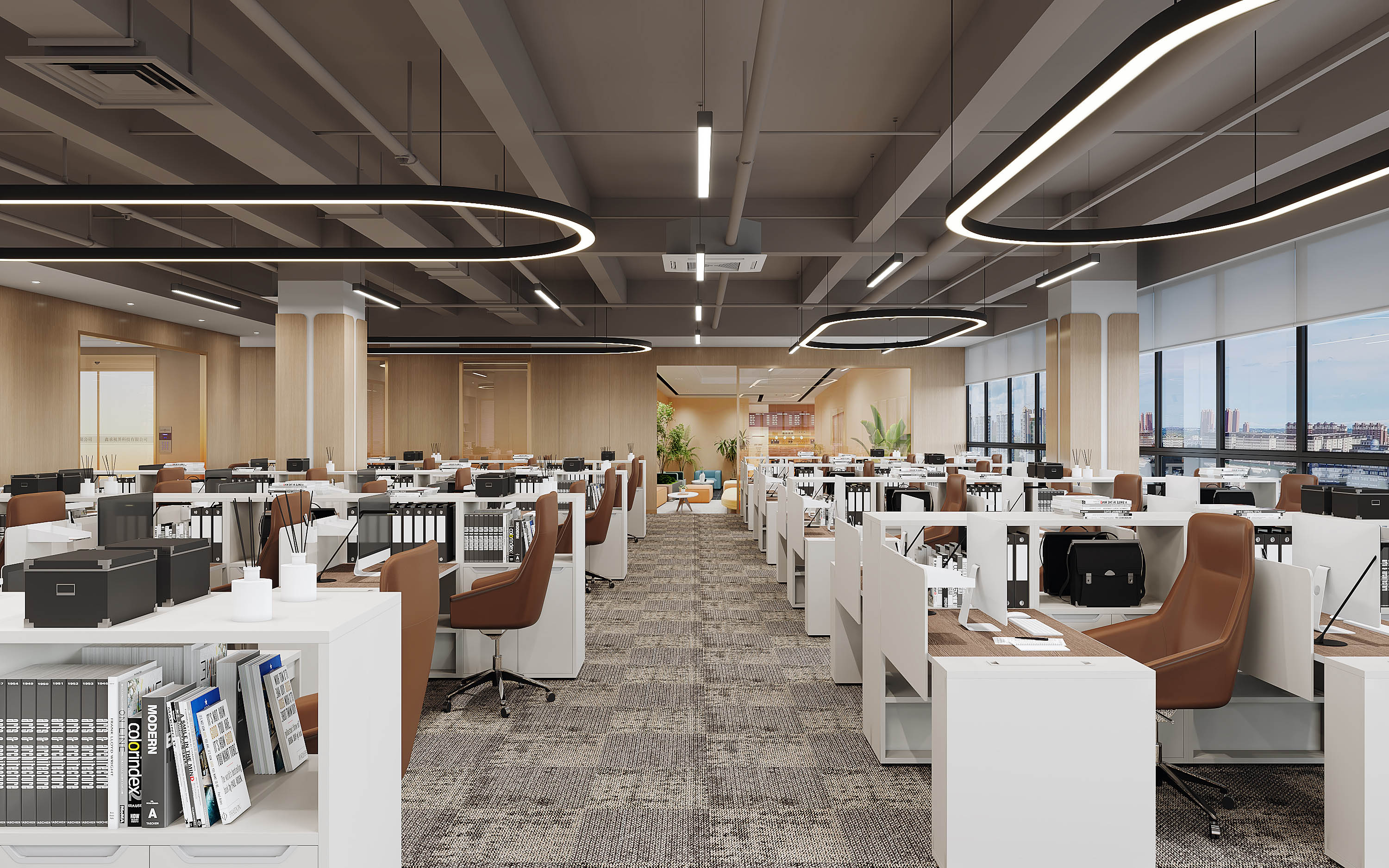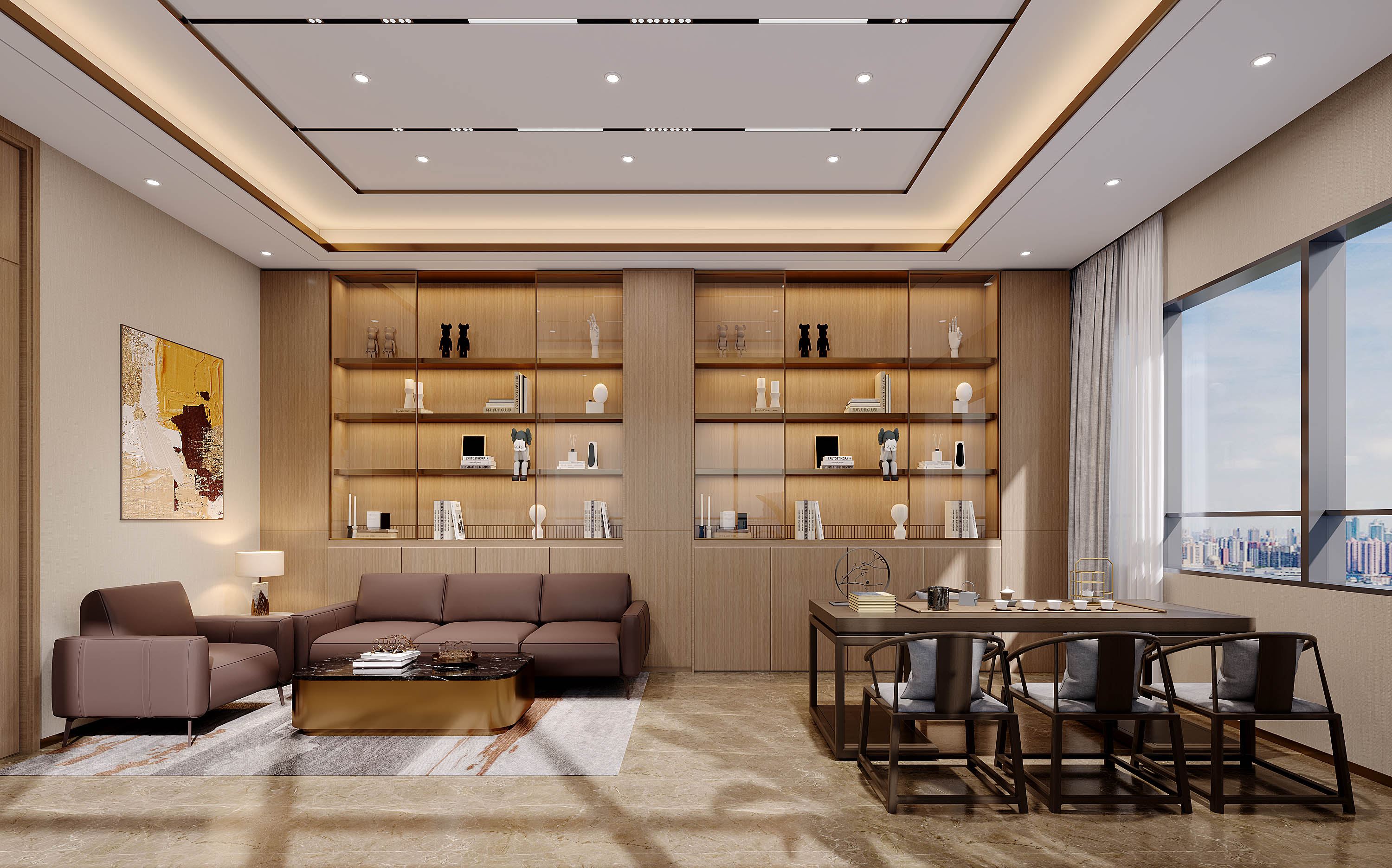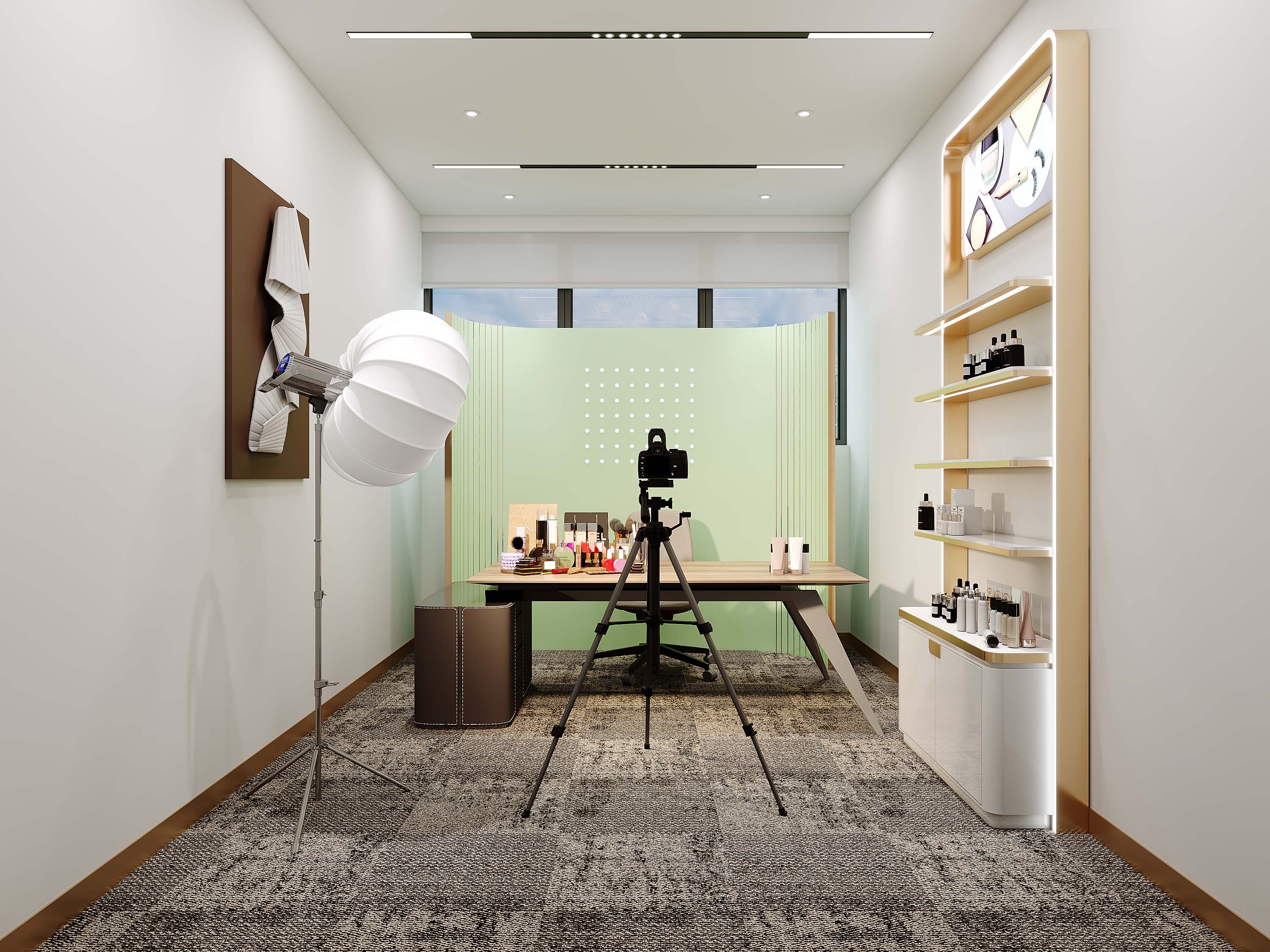 弧形前台搭配渐变光影背景,第一眼便传递品牌辨识度;开放办公区采用工业风无主灯设计,通透高效;多功能会议室、直播拍摄室与总裁办公室,覆盖多元办公场景。温润木饰面与大理石、玻璃材质交织,既保障空间质感,又融入人性化细节,为企业打造高效、专业且充满温度的现代化办公场域。